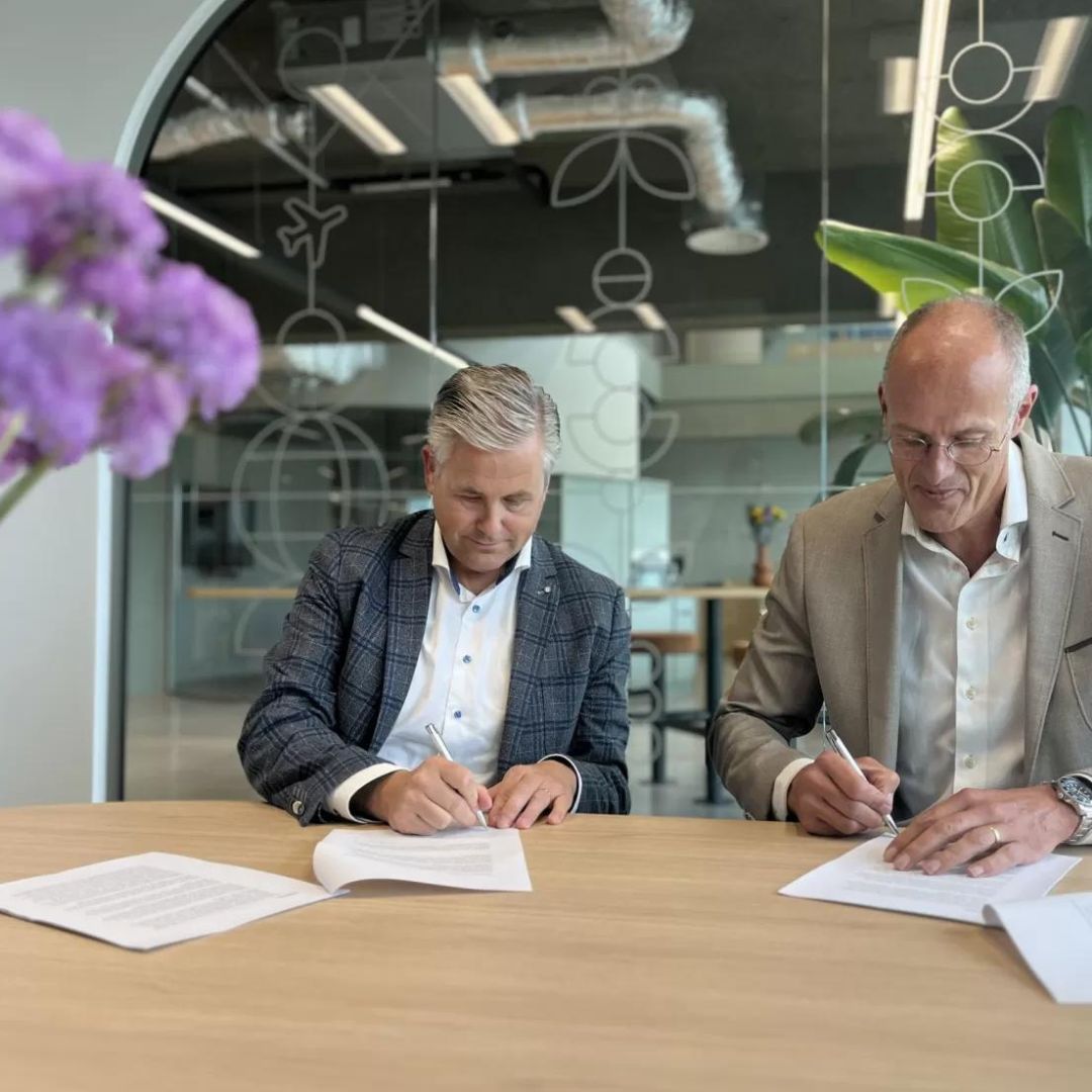 Pictured at the official Scabiosa Virtuoso® Saura signing: Bart Sneek – Commercial Director Hilverdaflorist and Michel Zaat – Managing Director Marginpar