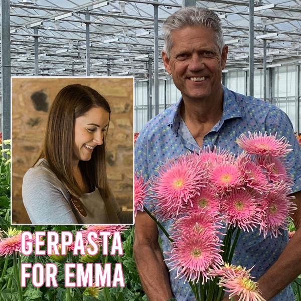 Emma was described as a “Larger-than-life character who was also feminine but with a twist of the unexpected!” Could the Holstein’s create a flower that would sum her up that could be presented to her children? Nothing was heard for a time and then came a message to say that they felt that they had nailed the brief and Gerpasta ‘Emma’ was born. A stunning pink gerbera that is anything but the norm.